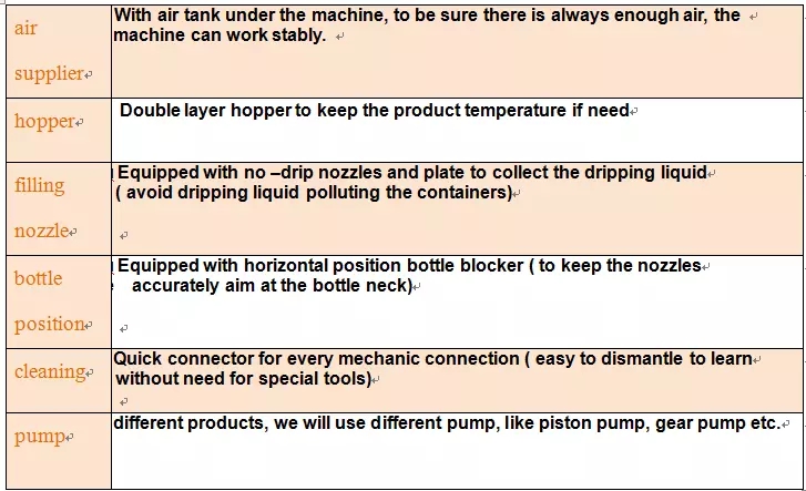 Эта машина специально сделана для всех видов вязкости / жидкости в пищевой промышленности, химической промышленности и промышленности, таких как моторное масло, моторное масло, салат, гель для мытья рук, кокосовое масло, соевый соус, кунжут, шампунь, жидкое мыло, моторное масло , тормозное масло, растительное масло, томатный соус, напиток, эфирное масло, растительное масло, мед, перечный соус, арахисовое масло, йогурт, сок, напиток и т. д. Вся контактирующая часть с жидкостью / соусом изготовлена из высококачественной нержавеющей стали. Машина принимает поршневой насос для наполнения. Регулируя положение насоса, он может заполнять все бутылки в одной разливочной машине, с высокой скоростью и высокой точностью.